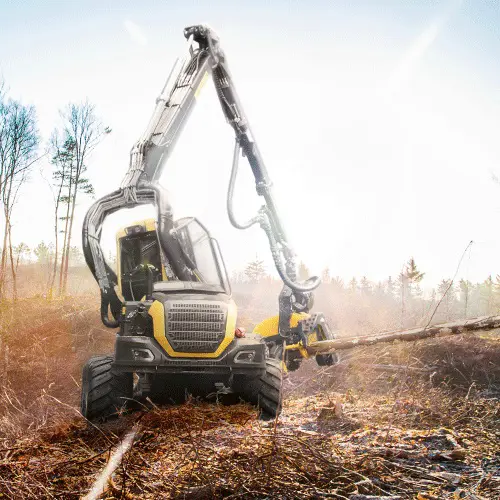 En quoi consiste donc une abatteuse? Il s’agit d’un véhicule lourd conçu spécifiquement pour déplacer une tête d’abattage. L’abatteuse possède une double fonction : la coupe de l’arbre, mais aussi le taillage de l’arbre en billots. En effectuant ces deux tâches, l’abatteuse réduit l’équipement nécessaire lors des travaux forestiers.